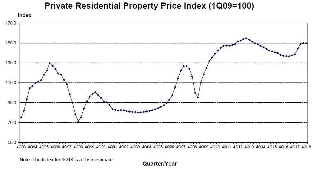 Private home prices slowed to a 0.5 per cent increase in the third quarter of 2018, and fell 0.1 per cent in the fourth quarter, URA’s estimates showed.
